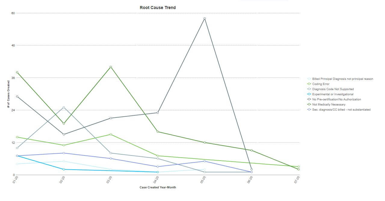 Combining the power of Veracity, codes review, and reporting enables the capability to drill-down on the specific diagnoses or procedures at the heart of denials.